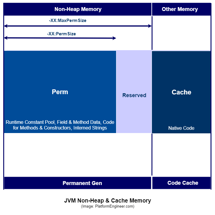但是,在JVM内部,存在单独的内存空间(堆、非堆、缓存),以存储运行时数据和编译的代码。
